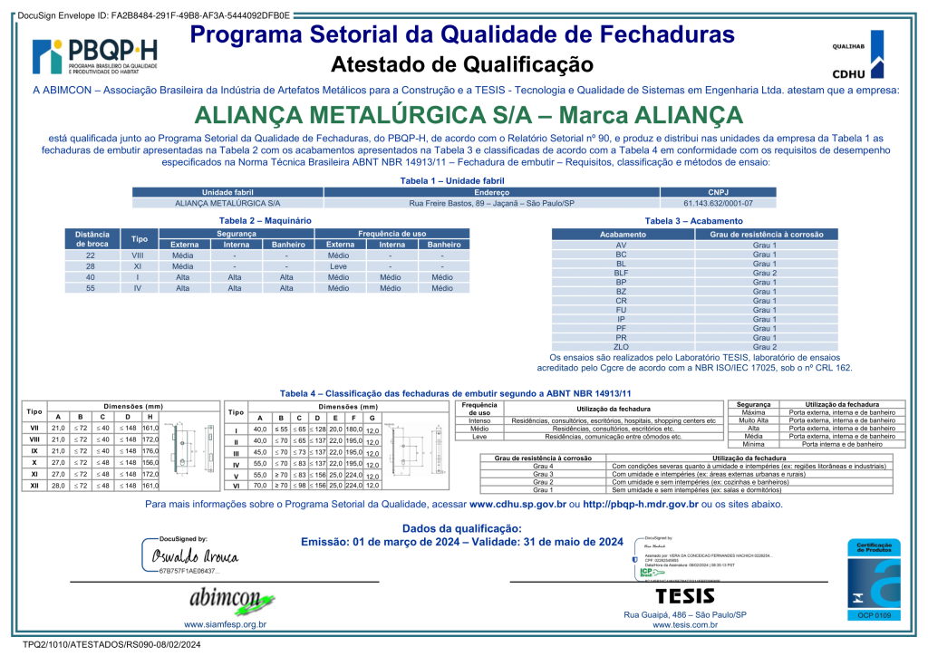 Na Aliança, a qualidade e a segurança são nossas maiores prioridades.