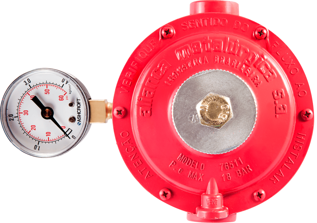 Regulador para gás 76512/02 vermelho com manômetro saída e DSA Aliança